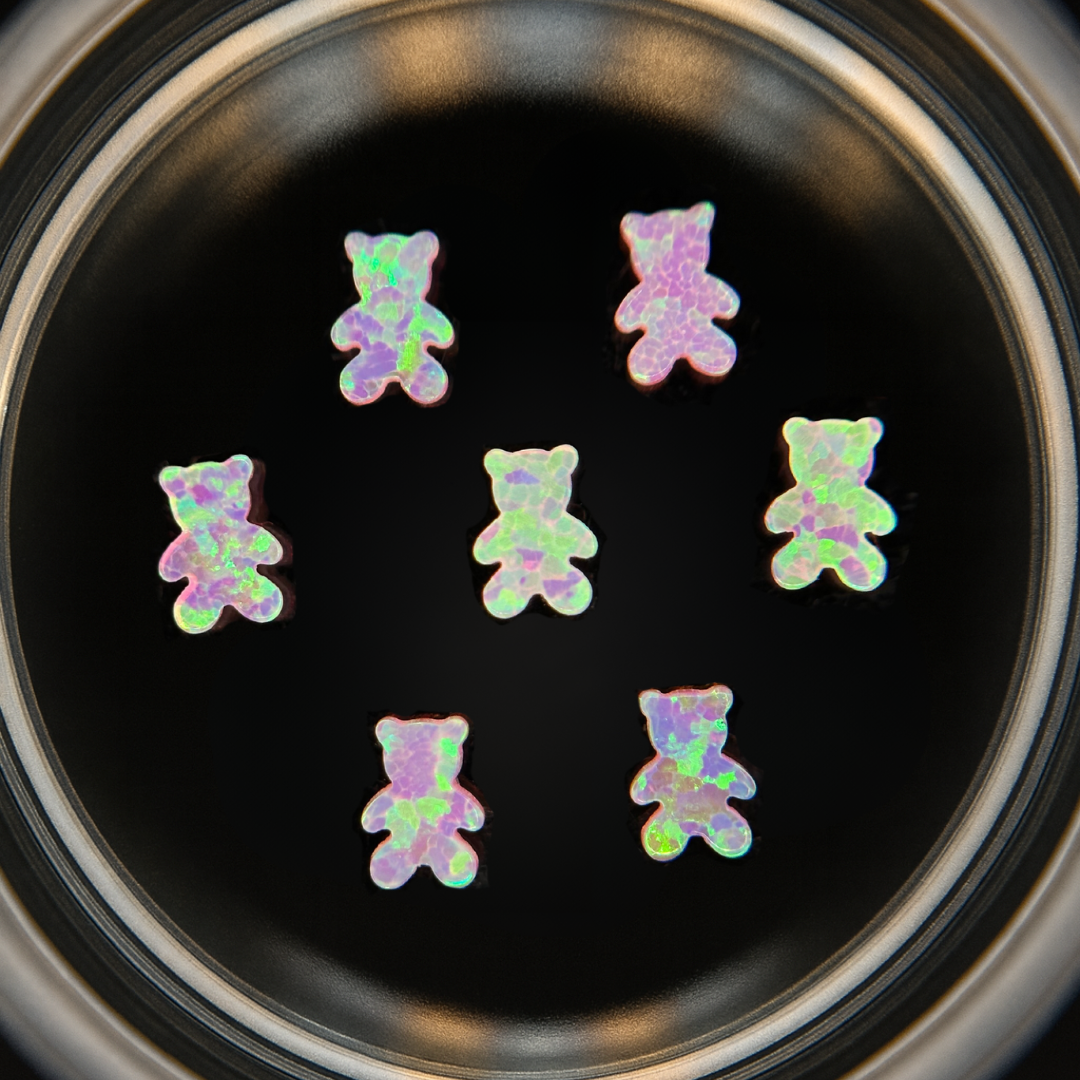Bear opals, lab-created and cut from Cabochon Opal — considered the highest quality opal in the world. Their curved profile and ultra-thin finish allow for more aesthetic, comfortable, and precise bonding.