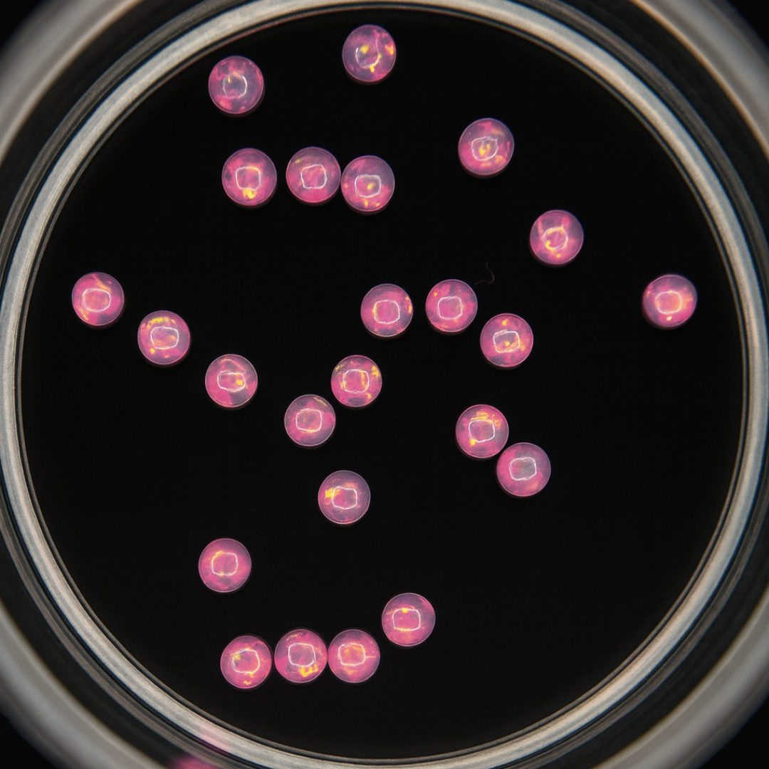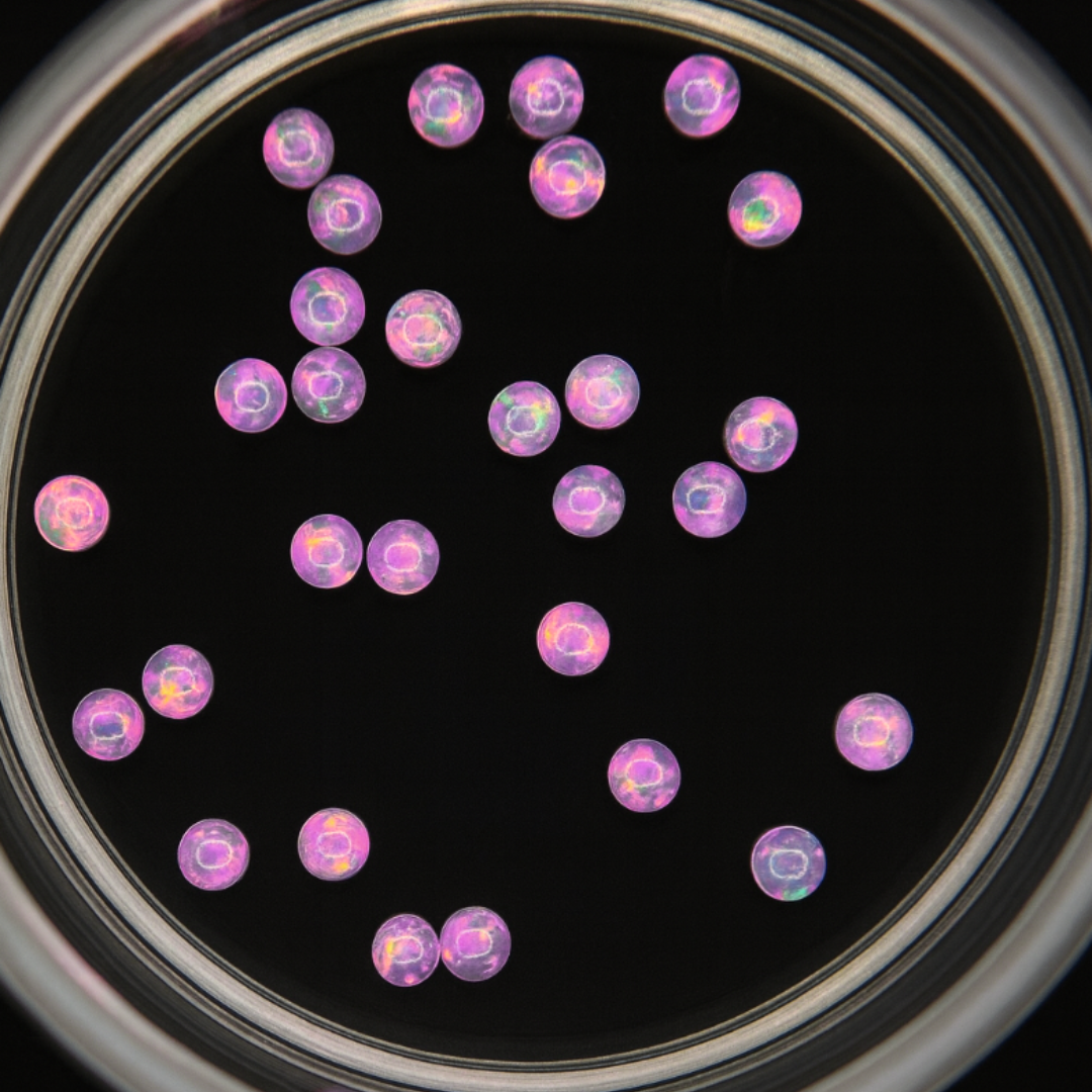 Round opals, lab-created and cut from Cabochon Opal — considered the highest quality opal in the world. Their curved profile and ultra-thin finish allow for more aesthetic, comfortable, and precise bonding.