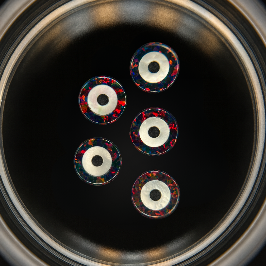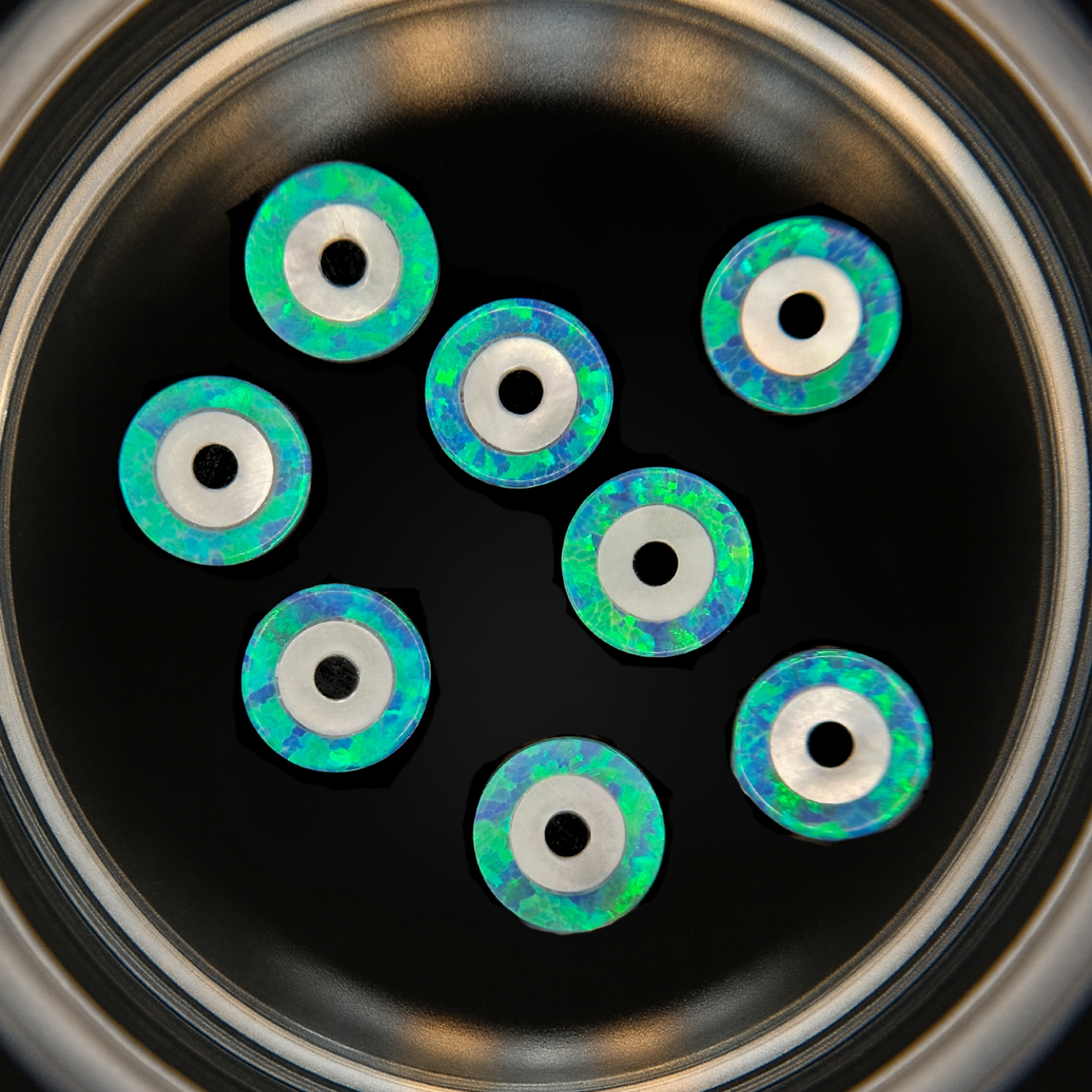 Ópalos en forma de Ojo Turco creados en laboratorio y tallados a partir de Ópalo Cabujón, considerado el ópalo de mayor calidad del mundo. Su perfil curvado y acabado ultrafino permite una adhesión más estética, cómoda y precisa.