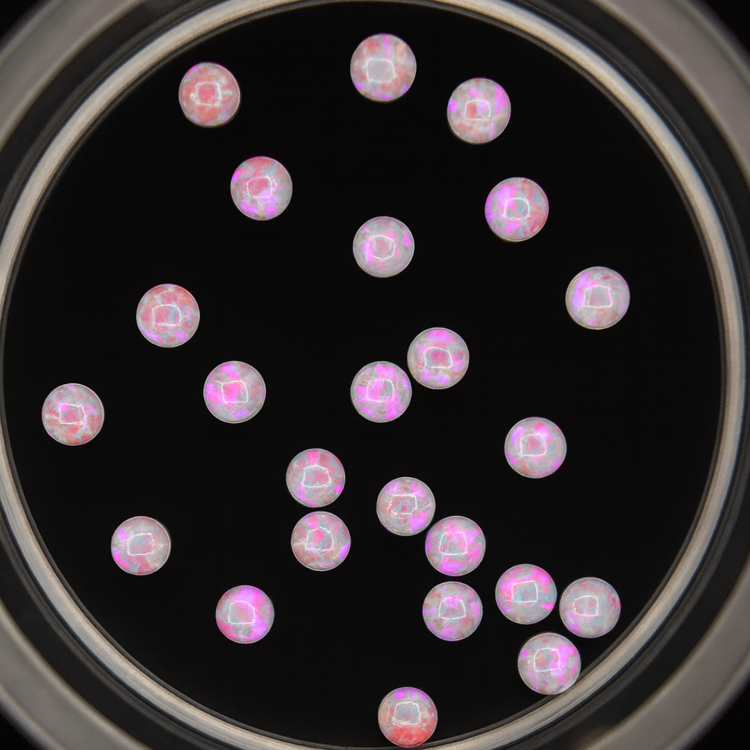 Ópalos Redondos creados en laboratorio y tallados a partir de Ópalo Cabujón, considerado el ópalo de mayor calidad del mundo. Su perfil curvado y acabado ultrafino permite una adhesión más estética, cómoda y precisa.